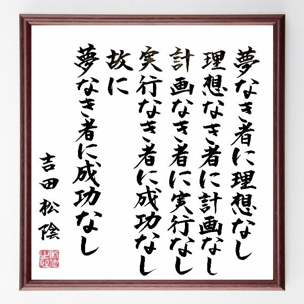 吉田松陰の名言色紙 夢なき者に理想なし 理想なき者に計画なし 計画なき者に実行なし 実行なき者に成功なし 故に夢なき者に成功なし 額付き 直筆済み Www Parselsorgu Com